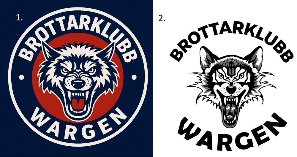 Två förslag på ny logga, båda med ett varghuvud i mitten och texten Brottarklubb Wargen runt